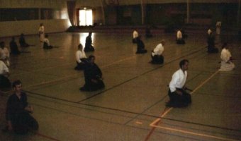 The 3rd step can be large or small, but don't place the foot down pointing to the left. After the step, turn on the balls of both feet and draw simultaneously. The cut is at the same time as the left foot is drawn back. Cut from his right shoulder to his left hip (left kesagiri?) Don't turn your hips too far away from teki during this cut. At the end of the cut the right hand is at navel level, tip slightly higher (not horizontal like some say). The right foot is drawn back half the distance between left and right feet and turned. The right heel may not move to the left during this, don't put the right foot in the way of your left. The sword is not pulled back much, the right hand does not go behind the hip. The left hand is placed on the mune about in the middle. Tsuki is to the lower belly, aim for the centre, and use both hands. The right thumb stops in front of the navel. First pull, then bring the right arm horizontal. The left hand does not move. Take the koiguchi and turn the hips without moving the sword. Withdraw the foot in synchronisation with chiburi, but the foot must start first. The angle of this chiburi is halfway between yoko chiburi and o-chiburi.