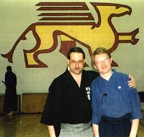 This day started with grading tests. Every grading I had been to before was always late in the afternoon, after a day of heavy seminar where lots of details are changed for the occasion, on the purpose of making people as nervous and confused as possible. Apparently this wasn't going to be the case here. That noon there was take-out Chinese food, and I secured some leftovers so I would have something to eat for the next breakfast. After this day's training, the floor was taken over by kendoka, and Rick Polland invited me for a bit of jodo. I had to admit rather fast that my concentration was out there somewhere, obviously jetlag and exhaustion was taking its effect. Apparently everyone else was tired too for this practice session ended quickly.
