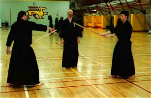 Monday was the last day for most people. I had an interesting conversation that day on how hard it is to find instruction in the states (because it's so big). It's hard for me to imagine, having to drive for four hours so you can train under someone who isn't even a shodan yet. Where I live I can drive in almost any direction and meet a godan in less than 2 hours! Maybe the distance factor also explains why more people didn't turn up for the seminar. Tuesday's class was really shocking in this respect. I know it was a weekday, and also that places to this class were limited (I'm very happy I was allowed to join), but a dozen people for Haruna sensei and Oshita sensei teaching Niten Ichi ryu, Musashi's school? I'm not complaining of course, that way we got personal instruction.