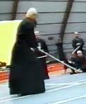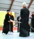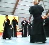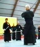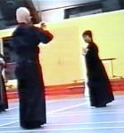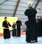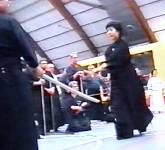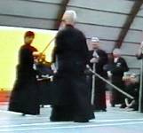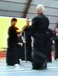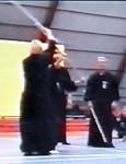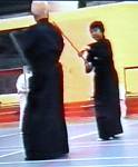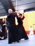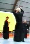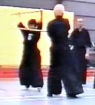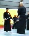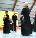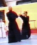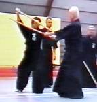 SUI GETSU To meet a sword attack to the centre of the head, the body is moved forward to the diagonal right and a thrust is made to the enemy's solar plexus. This is followed by a Hikiotosch uchi.