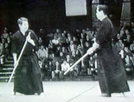 Much legend has accumulated around these men and their encounter, so we will likely never find out what actually happened. One of the less plausible but most often repeated stories has Muso and Musashi meeting for a duel, the first with a long (six shaku) bo, the latter with his trademark two swords. Muso swings to Musashi's head, who blocks in jujidome (an overhead x-block). "Kusou, why didn't I think of that?" says Muso, and he goes off to sulk, but suddenly gets an idea. He shortens his stick and hurries back to Musashi. "Watch this, Miyamoto!" he shouts as he swings again to Musashi's head, who obligingly blocks again in jujidome. However, thanks to the shorter stick, Muso is able to hit Musashi in the plexus with the other end. "Got ya! Bwahahahaaa!" And thus a new koryu was born.