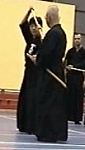MIDAREDOME Gyakute uchi is used to strike at the bokuto held in seigan no kamae. This is followed by another gyakute uchi to the face, rotate the jo 180° and strike the bokuto down with honte uchi. A cut to shomen is countered with Maki otoshi, and a second cut is met with Taiatari followed bij hikiotoshi uchi. The push in taiatari is done with the left foot instead of the usual right foot.