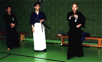 I originally planned to use different typeface to distinguish between what was actually said, what was shown, and my own comments, but I decided that this would create an unwarranted impression of objectivity. It's probably better that everything below is considered as my subjective opinion. Oda sensei read from his notes while Furiuchi sensei demonstrated, and the two didn't always agree. It should also be mentioned that the iaido seminar was not acoustically isolated from the Nakakura cup, so we didn't hear everything that was said due to the kendo noise.