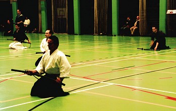 The iaido seminar was taught by Oda sensei and Furiuchi sensei, assisted by some of their students. (Nakakura sensei didn't attend this year, I heard he had a bad encounter with a stair).